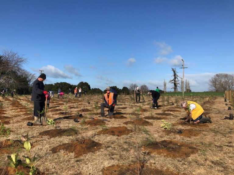 So, there were the volunteers of Keep Te Aroha Beautiful, working out plans for a Grand Public Event in Te Aroha, where 500+ locals could come along to plant their own native tree. Not just any tree mind – NZ’s Forest Giants – kahikatea and matai – capable of growing up to 60 metres! Would it rain? Would the site be underwater?