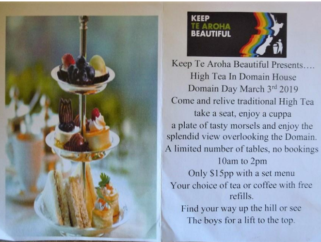 On 3 March 2019 a ‘high tea” fundraising event was organised by Keep Te Aroha Beautiful on March 3rd 2019 to revive interest in the Domain house which hadn’t been used for some time.